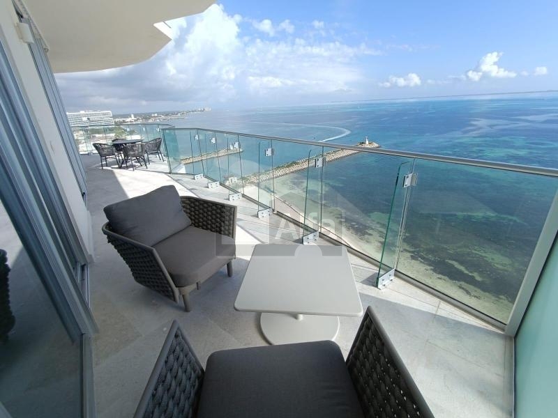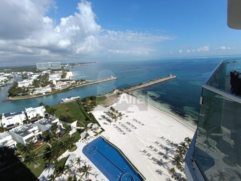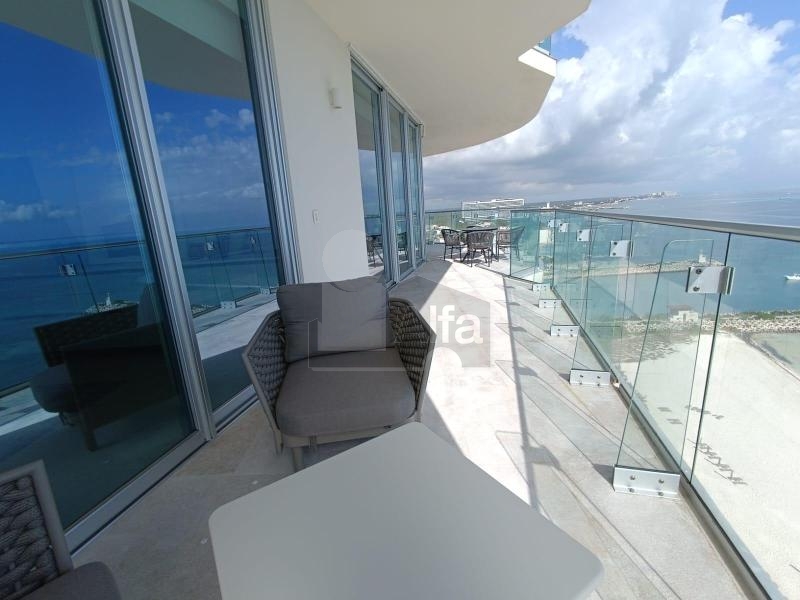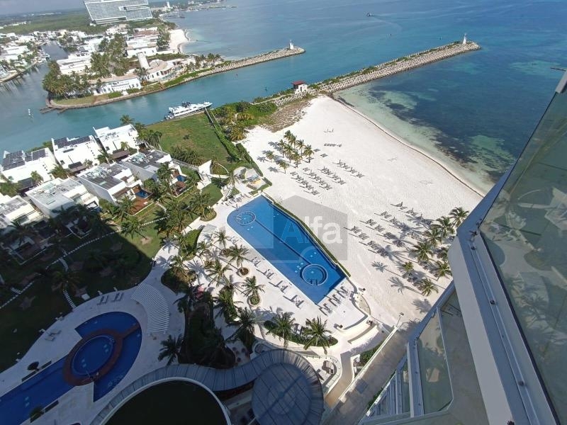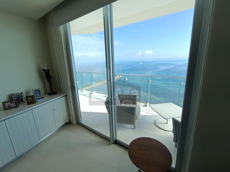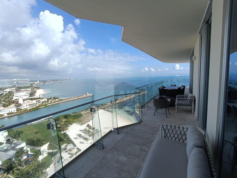 La propiedad es ideal para quienes buscan un estilo de vida exclusivo frente al Mar Caribe. Ubicado en el piso 16 y en esquina, este departamento ofrece vistas panorámicas al mar, Isla Mujeres y la zona hotelera de Cancún. El acceso directo desde el elevador conduce a un vestíbulo privado que da paso a interiores donde el lujo y la comodidad se integran con el entorno.